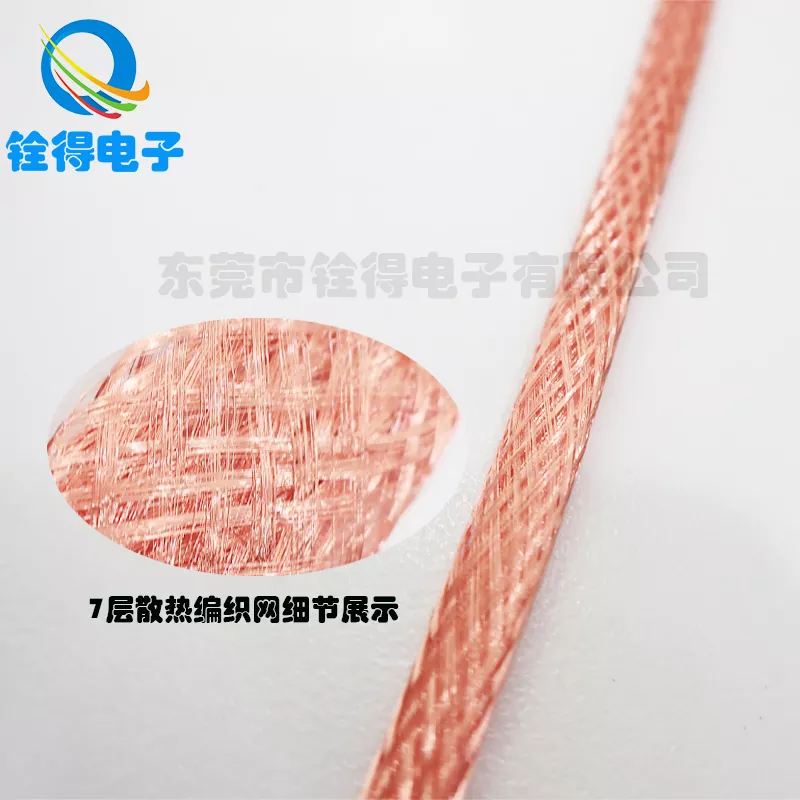 3D-warmte-dissipatie gevlochten koperen tape is meestal gemaakt van hoogzuiver koper of zuurstofvrij koper. Dit type koper heeft een hoge thermische geleidbaarheid en kan snel warmte overbrengen van de warmtebron naar de gehele koperen tape.